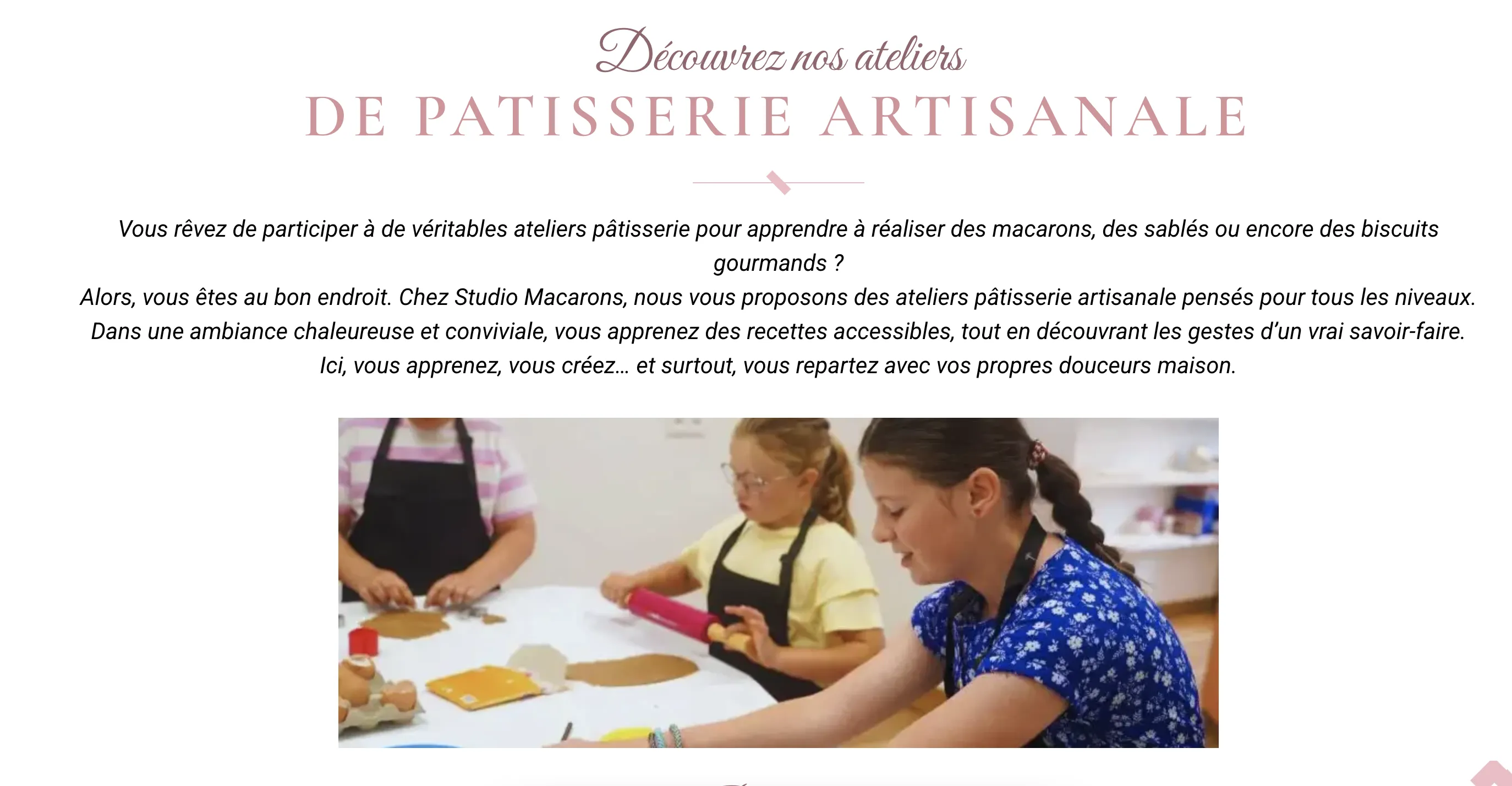 J'ai travaillé sur la page atelier en y ajoutant une extenson permettant la réservation des ateliers proposés sous forme de calendrier. De cette manière, les clients ont une vision nette des dates et horaires proposés, mais paient aussi directement l'atelier en ligne (gain de temps et de logistique: plus d'impayés, et logistique facilitée par la mise en place d'un nombre de participants restreints)